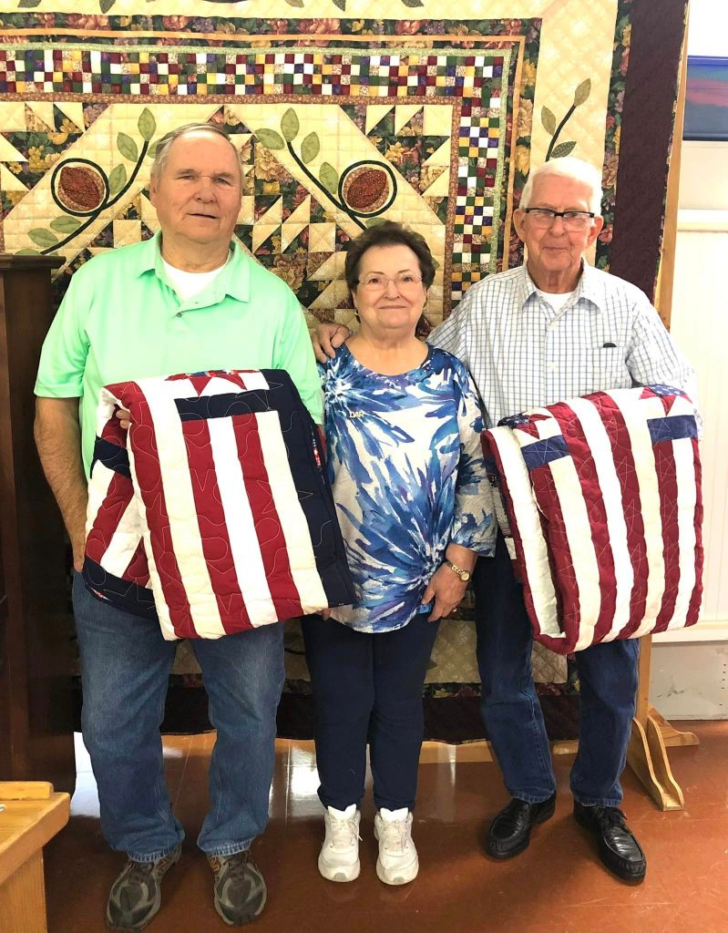 The Frederick Van Patten chapter has many talents that the members use to honor God, Home, and Country. One of those talents is being able to sit patiently for hours piecing scraps of fabric together to make it into something of use. Member Susan Ashcraft quilted two Quilts of Valor, which were then gifted to two local veterans in appreciation of their service.